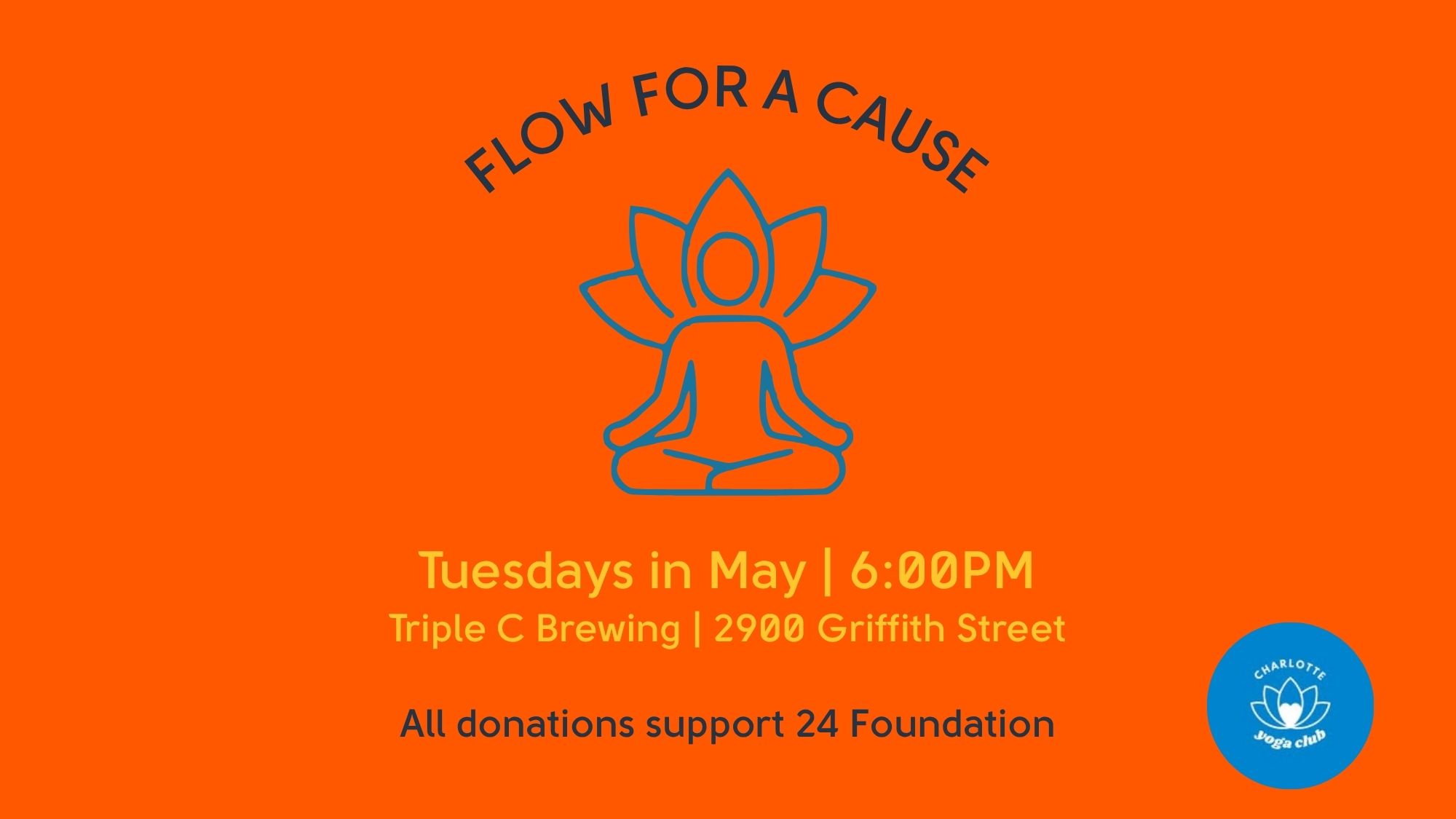 Yoga meets impact. Join Charlotte Yoga Club every Tuesday in May at 6:00PM at Triple C Brewing for donation-based ($5 minimum) yoga benefiting 24 Foundation. Come move, unwind, and support our local cancer community.